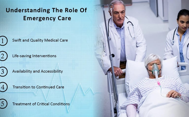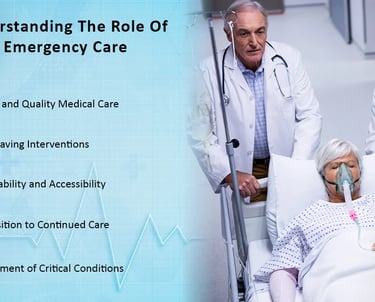 Emergency care is the immediate medical treatment needed for injuries or illnesses that pose a risk of death or severe disability. It's a crucial part of healthcare that involves rapid assessment and intervention to stabilize patients and prevent further harm. This includes care provided in emergency departments, intensive care units, and even during prehospital transport.